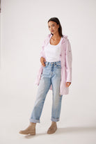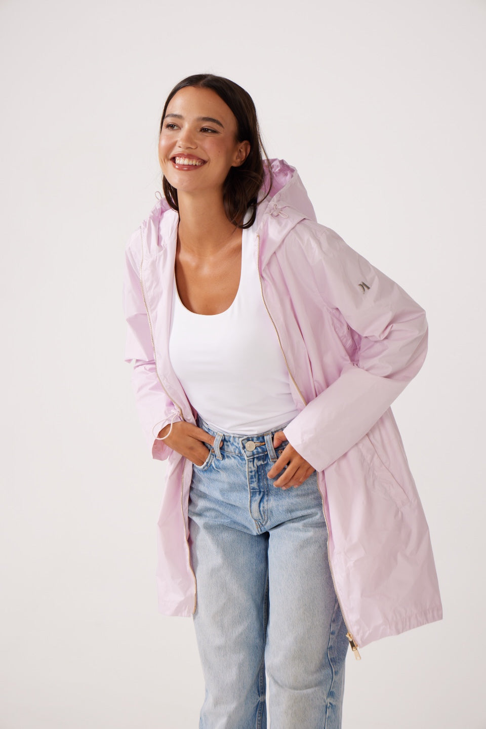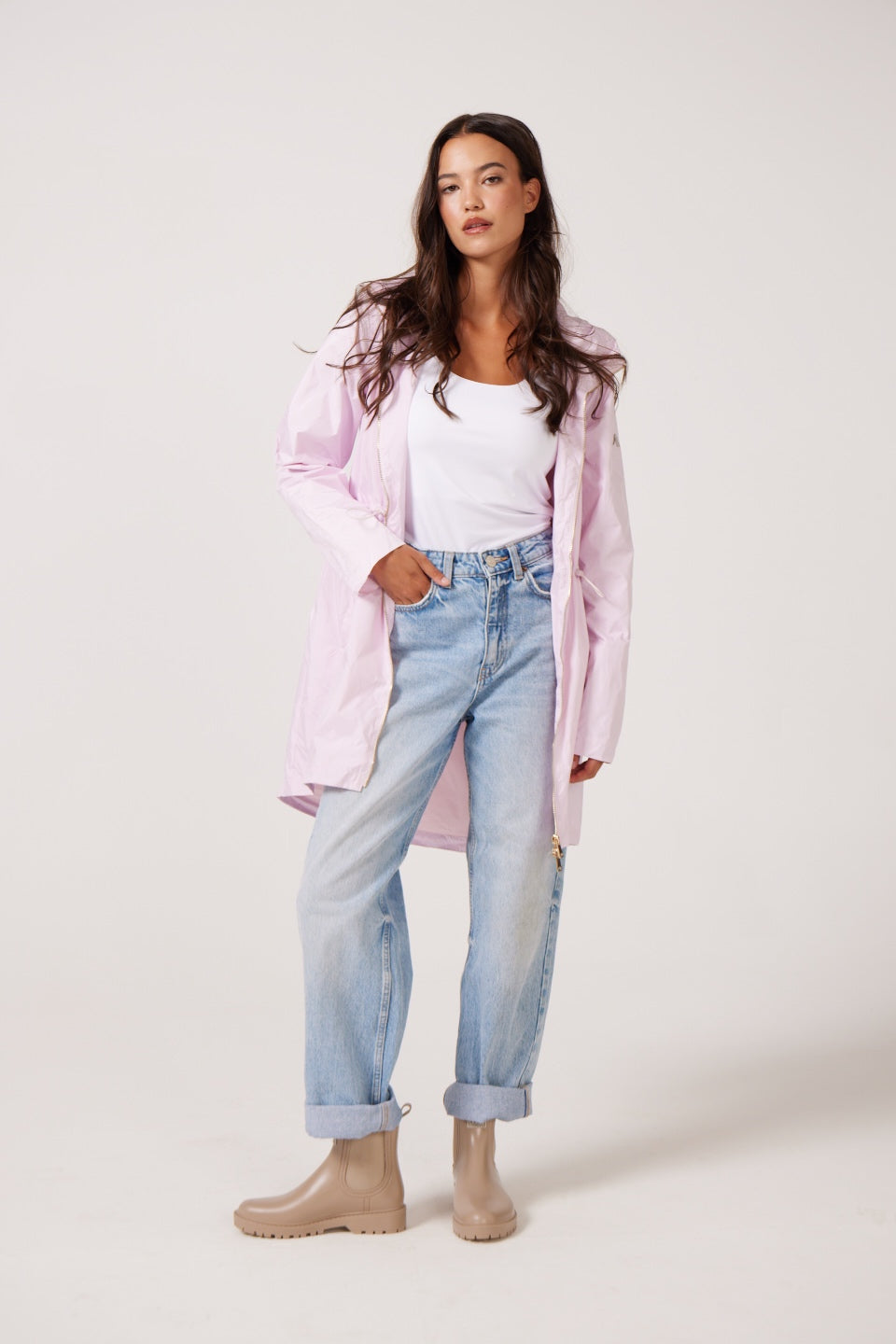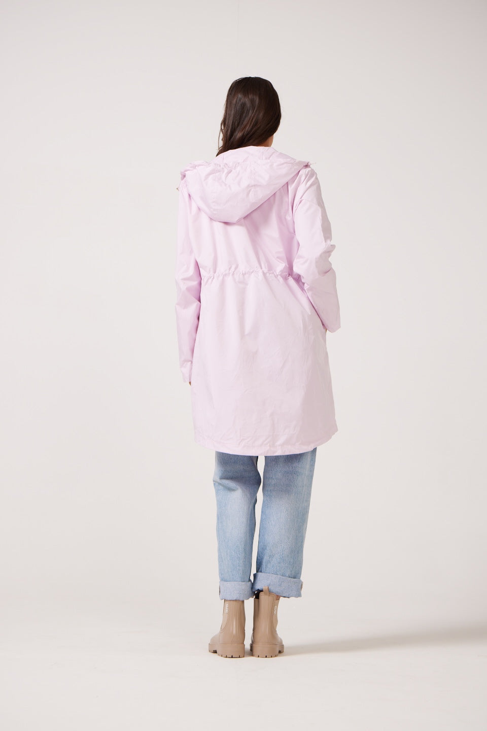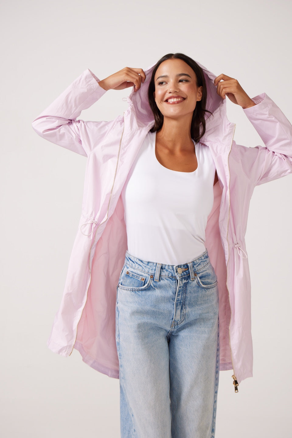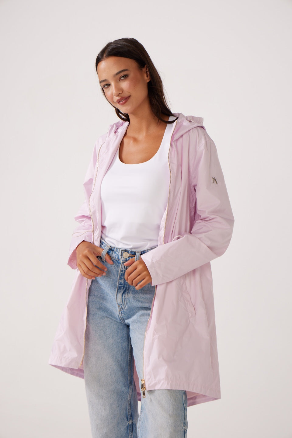 This mid-thigh length raincoat offers a stylish yet practical solution for staying dry all year long. 100% waterproof with an adjustable hood and sleek design, it provides full coverage and comfort while maintaining a flattering silhouette.