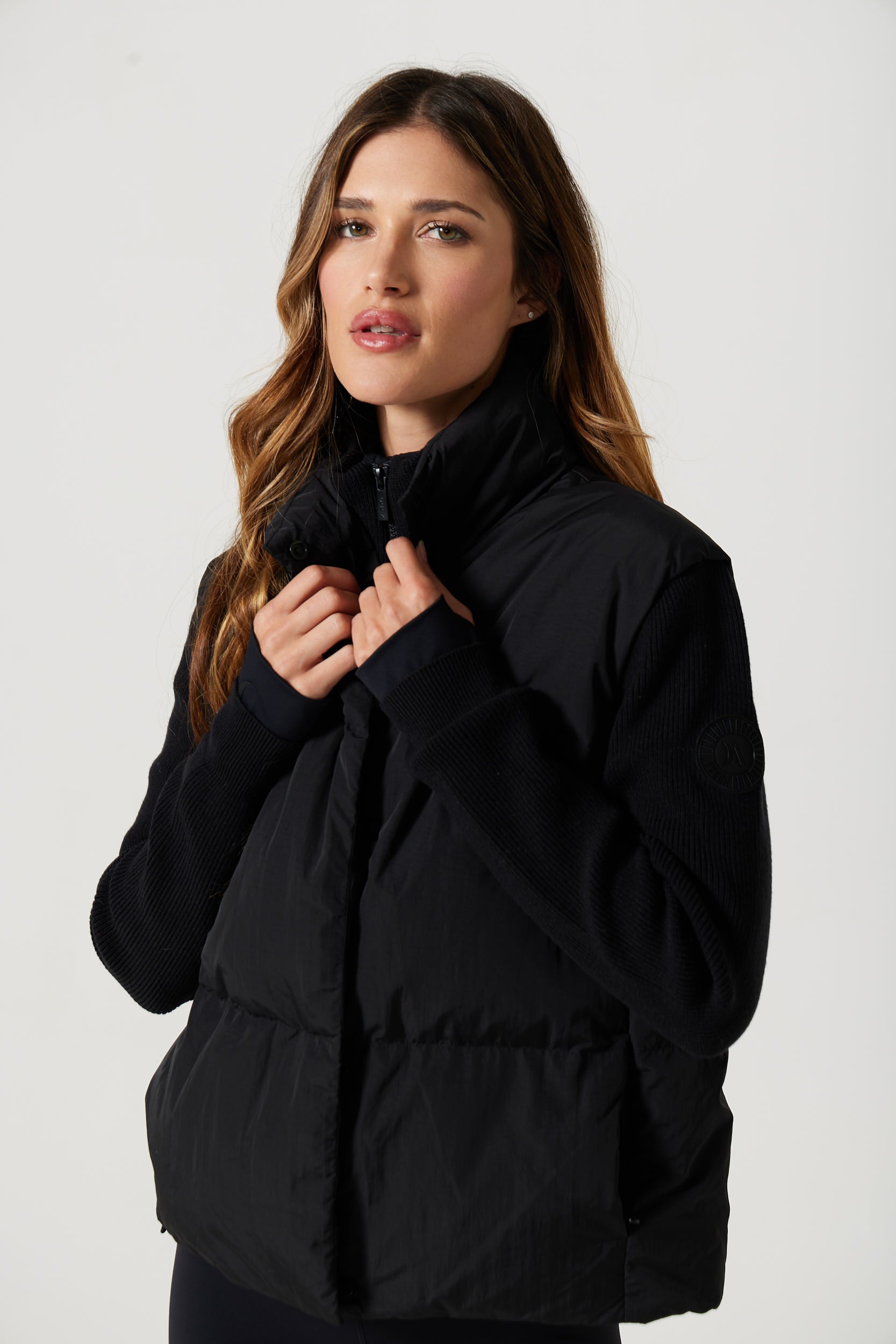A modern hybrid designed for everyday comfort. This puffer jacket features a padded body for warmth, balanced with soft jersey knit sleeves for ease of movement. The result is a layer that feels warm where you need it and flexible where you want it - perfect for all-day wear comfort!
