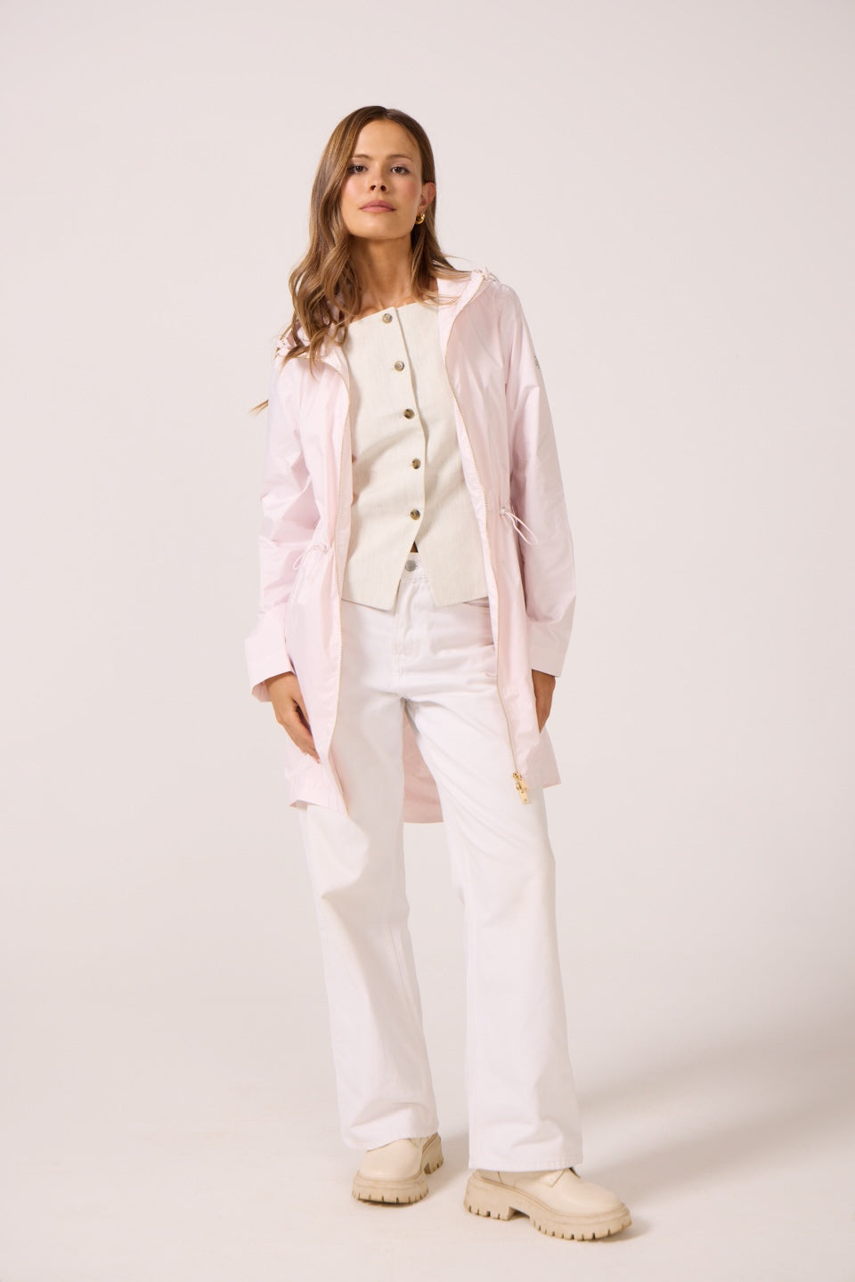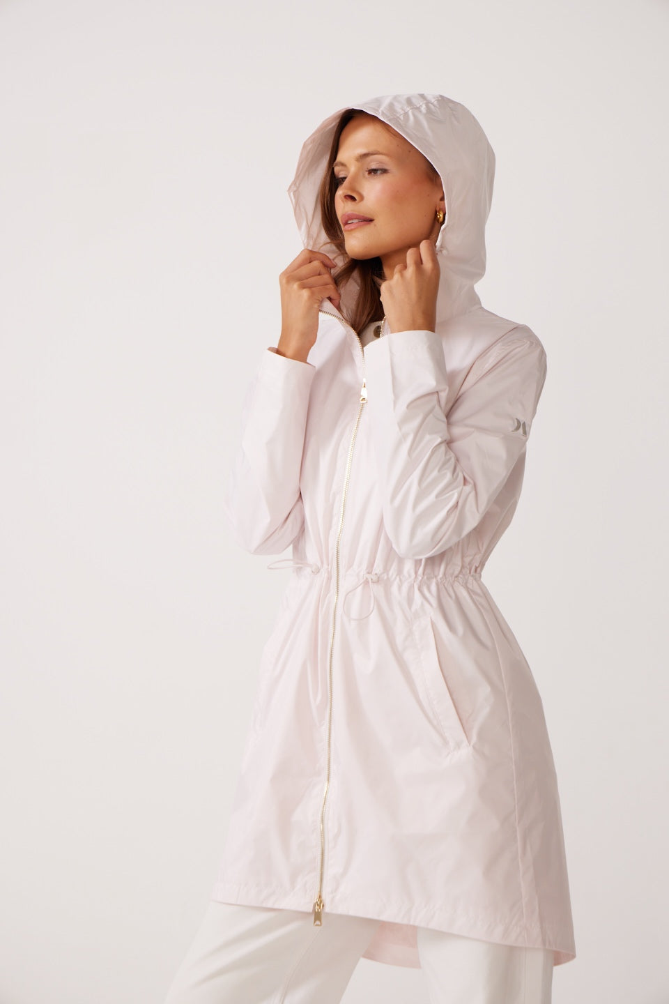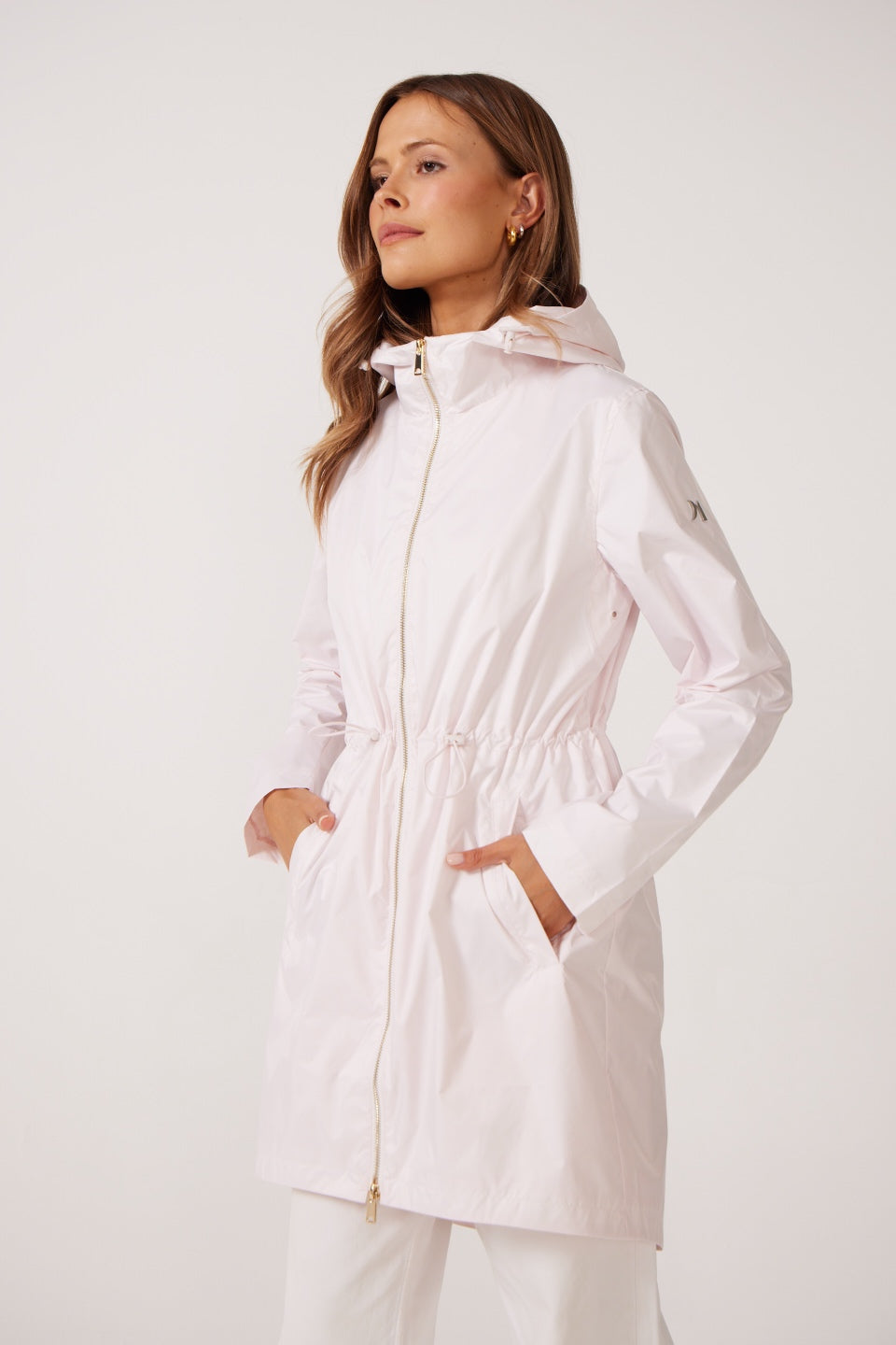 This mid-thigh length raincoat offers a stylish yet practical solution for staying dry all year long. 100% waterproof with an adjustable hood and sleek design, it provides full coverage and comfort while maintaining a flattering silhouette.